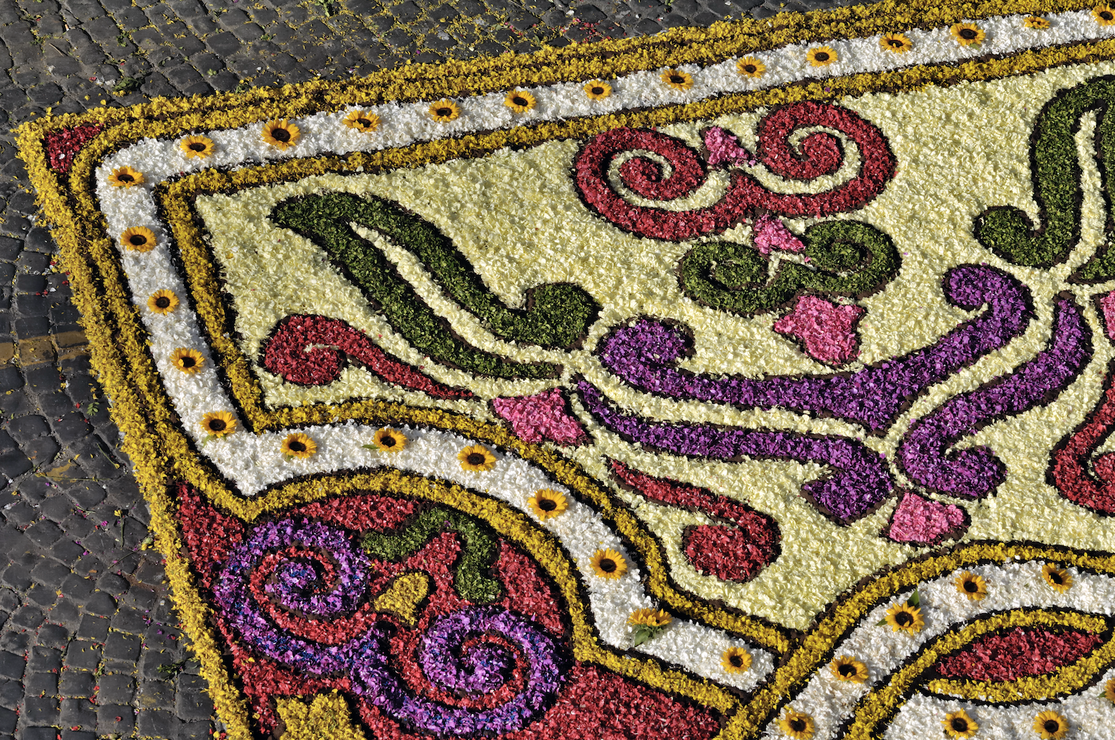 By Sunday afternoon, a traditional procession deliberately walks across the designs, dismantling them in minutes and highlighting the ephemeral nature of flowers and the natural world.