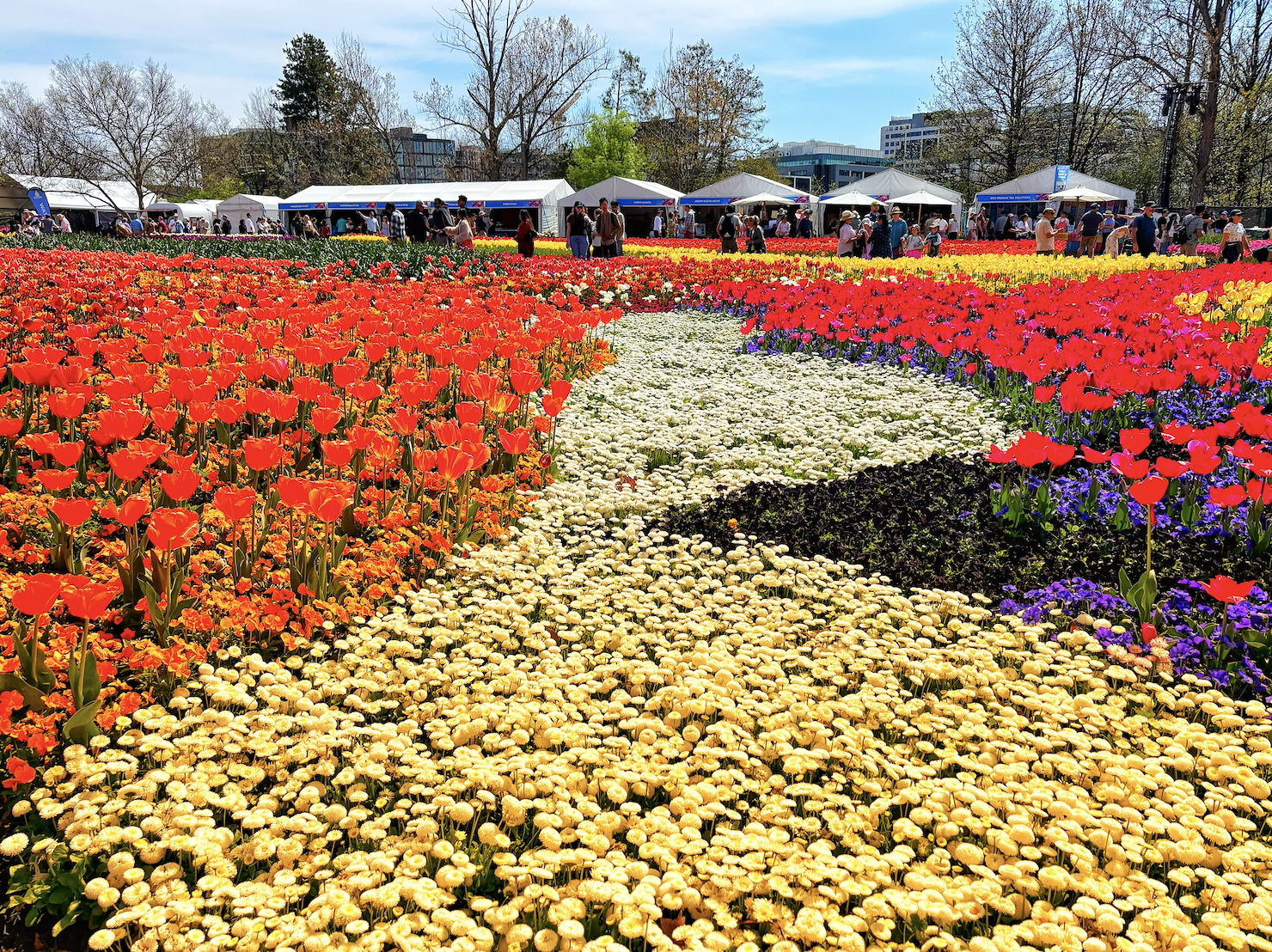 Spring Down Under is in September and October, and that’s when Aussie gardens shine. Floriade is known for its mass plantings arranged in bold, almost graphic patterns—entire beds of tulips and annuals laid out like landscape-scale design pieces around Lake Burley Griffin.